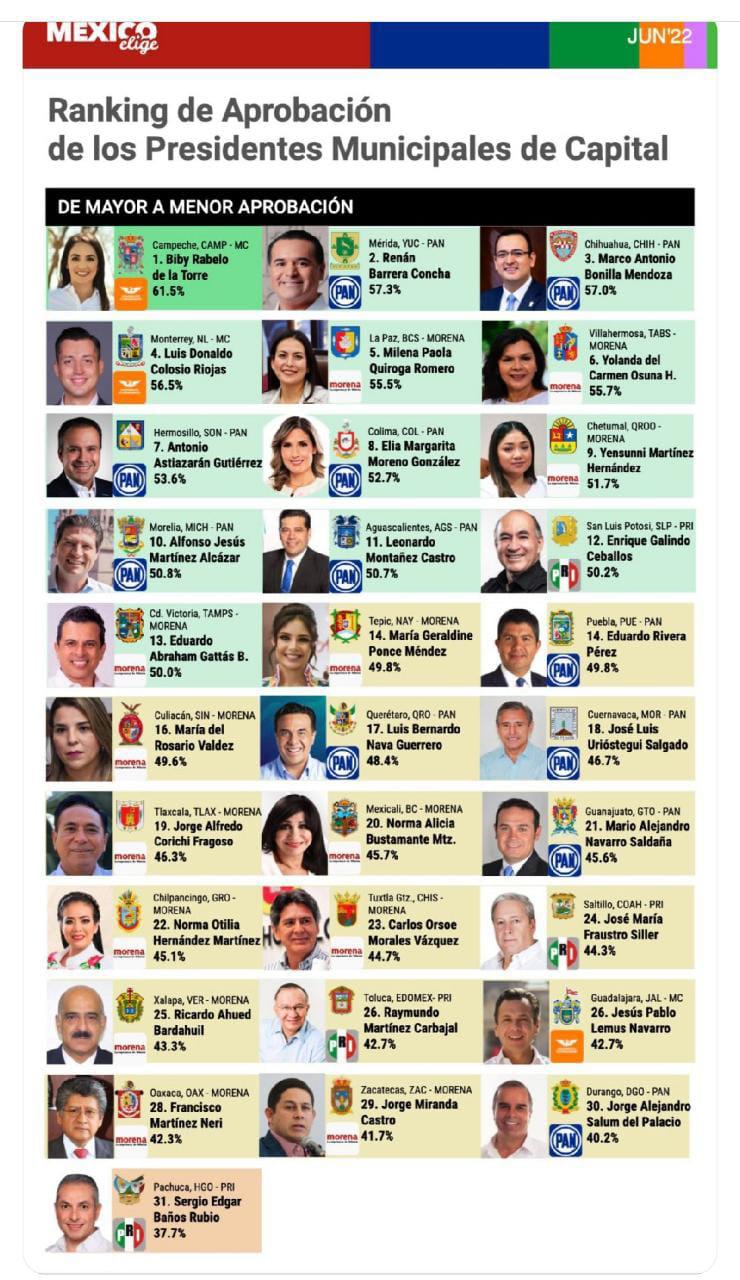 De acuerdo a su sondeo del mes de junio, Gattás Báez ocupó el lugar 13 de la lista de 32 ediles evaluados con un 50 por ciento de aprobación ciudadana, pese al embate político que se orquesta desde el Gobierno del Estado en su contra.