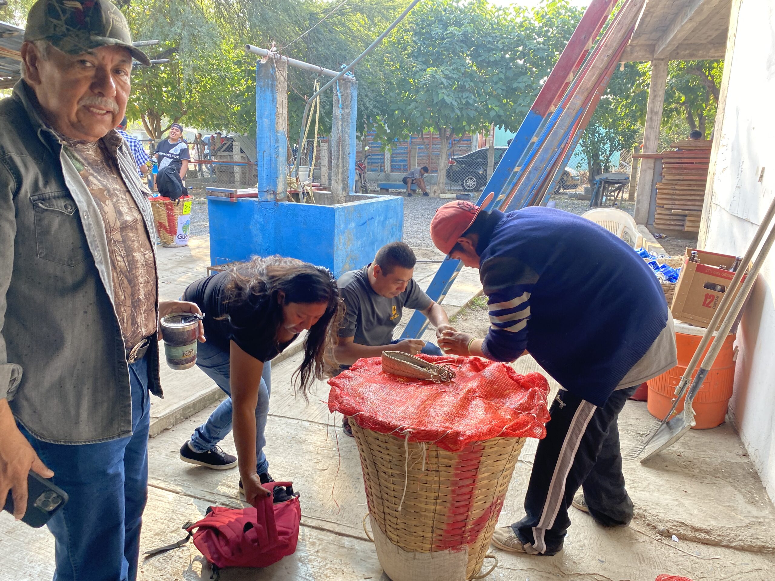 Y usted se preguntará ¿por qué 65 kilos?, y la respuesta la da Murrieta Rojas, el coordinador en jefe, también jarocho, dedicado a la renta de escaleras para corte y que también saca de su cartera.