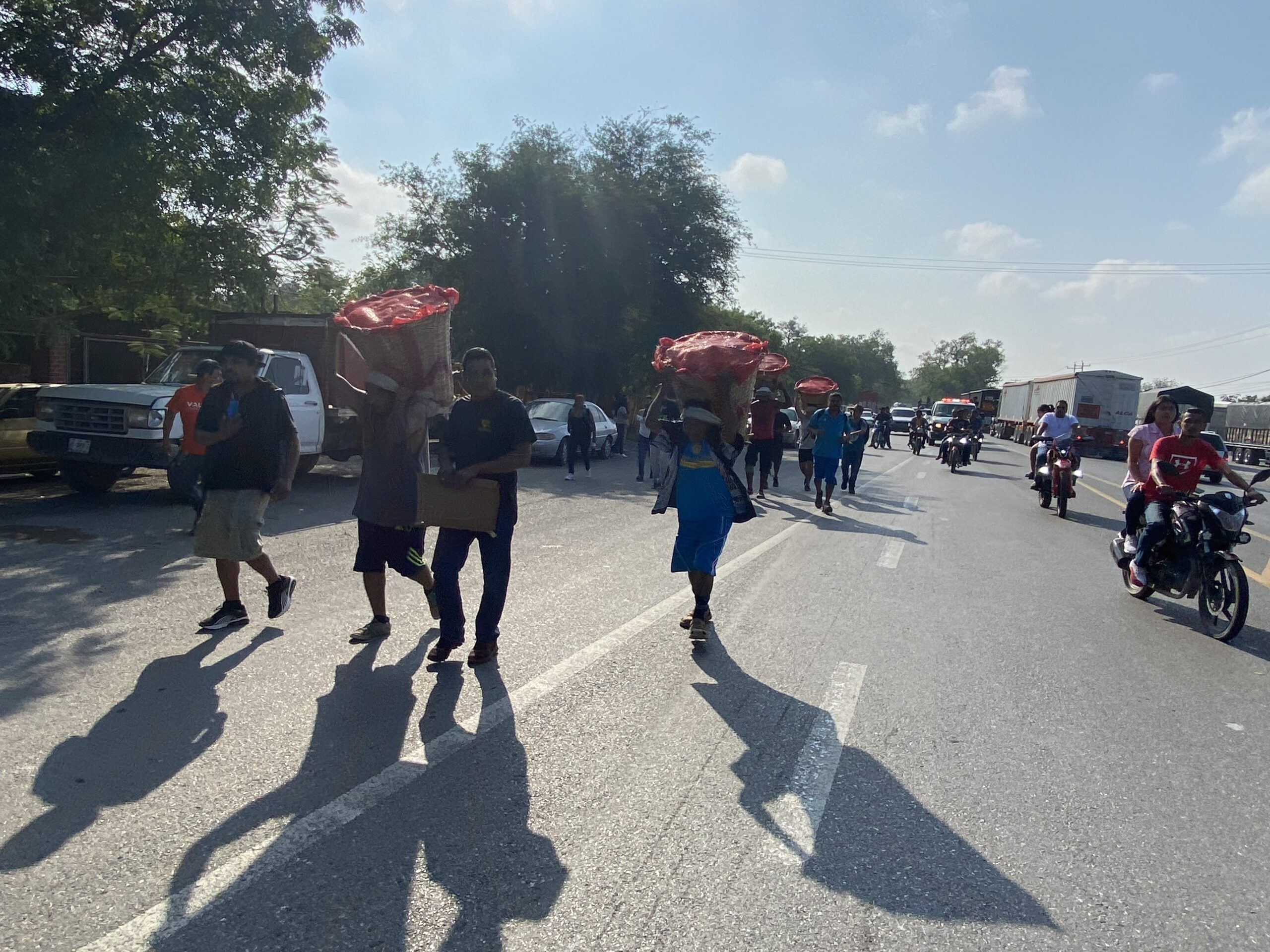 Guémez, Tamaulipas.- Son los “hombres de acero”, capaces de correr a velocidad de seis minutos por kilómetro llevando 65 kilógramos de naranja en la espalda, colgados de un mecapal sobre su frente.