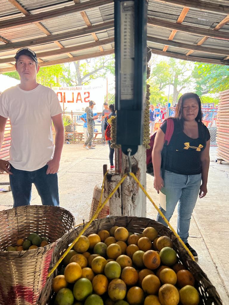 Y en efecto son 65 kilos de carga. No hay trampa. Los pesaron desde temprano en la báscula y, para que no quepa duda, zurcen un costal a la boca de los colotes. Nadie puede tirar peso.
