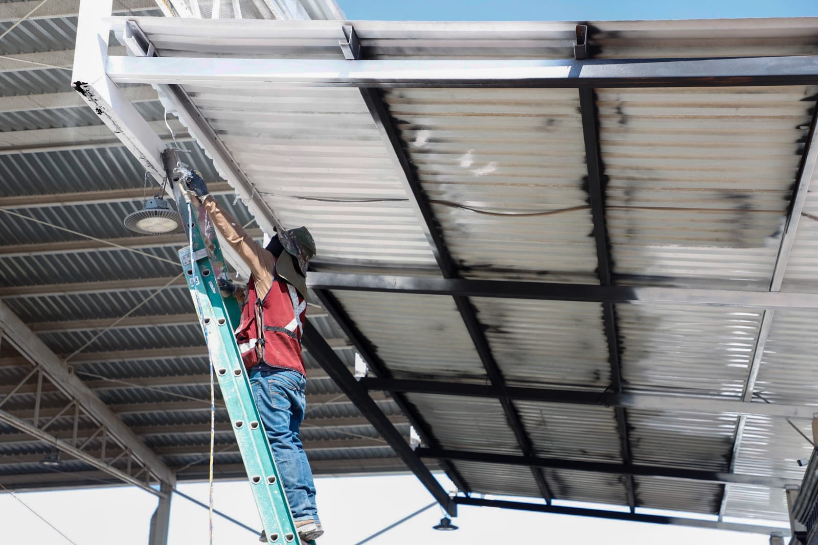 Reynosa, Tamaulipas.- Para la administración pública municipal 2021-2024 que preside Carlos Peña Ortiz, el mantenimiento de la infraestructura escolar es de suma importancia para la seguridad de alumnos y Maestros, y por ello, la Coordinación General de Servicios Públicos Primarios lleva a cabo la aplicación de anticorrosivo en la techumbre de la escuela primaria, María J. González.
