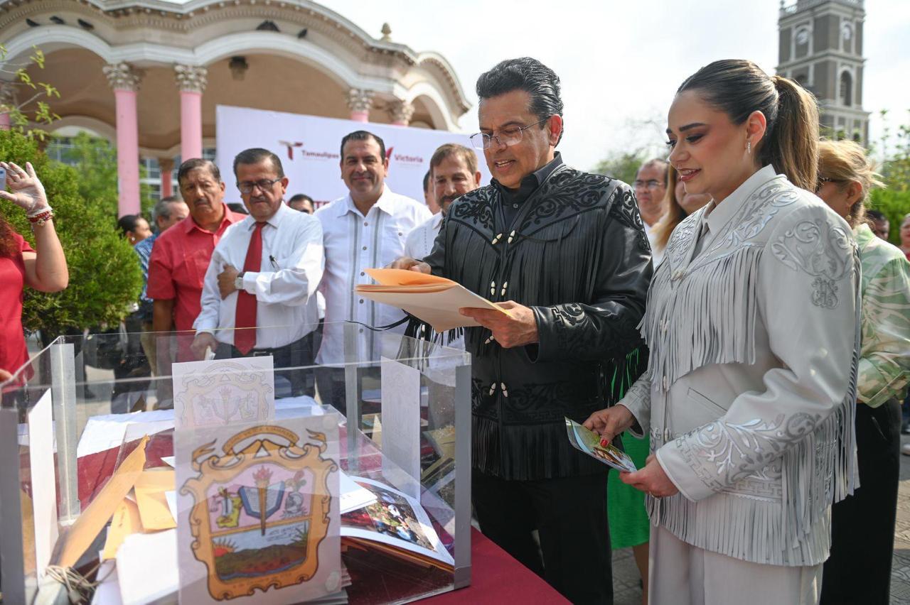 En la ceremonia cívica se develaron letras de oro en la Sala de Cabildo, conmemorativas de la Capitalidad de Victoria y la Placa del Bicentenario en la entrada de Palacio Municipal; y se dio el banderazo de inicio a los trabajos de restauración del mural que se ubica en la planta alta del edificio de la Presidencia Municipal.