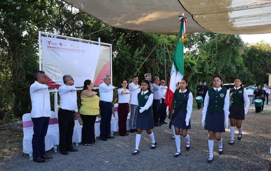 La sede de la ceremonia de inicio ciclo escolar, entrega de libros de texto gratuitos y paquetes de útiles escolares en educación básica, fue la escuela telesecundaria “Ramón Durón Ruíz”.